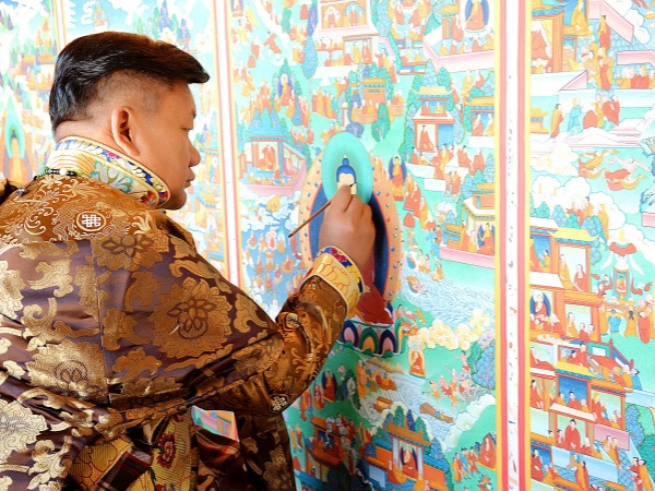 En la maravillosa tierra del Tíbet existe una deslumbrante forma de arte que sirve tanto como expresión devota de la fe religiosa como enciclopedia de la cultura tibetana: el thangka. Es un tapiz o bandera budista, de seda pintada o bordada. Suele colgarse en monasterios o altares familiares y ocasionalmente es llevado por los monjes en procesiones ceremoniales religiosas. Trasciende el ámbito de la pintura ordinaria, sirviendo como herramienta sagrada para los monjes budistas tibetanos en sus prácticas meditativas y guiando a los devotos en la comprensión de las enseñanzas budistas. Es una forma de arte visual que integra a la perfección doctrinas profundas, rituales rigurosos y una artesanía suprema. Cada thangka ortodoxo constituye un sistema simbólico meticulosamente estructurado. Desde la forma, las proporciones y el colorido de la deidad principal hasta los mudras, los instrumentos rituales y, de hecho, cada detalle del fondo, todo debe ajustarse estrictamente a las prescripciones de las escrituras budistas. Para el practicante, el thangka sirve como una «hoja de ruta» para el cultivo espiritual. A través de la contemplación y la visualización, uno entra en el reino sagrado representado en la pintura, alcanzando así un estado de unión espiritual con el Buda. Tras evolucionar a lo largo de un milenio, la pintura thangka se ha convertido en una variada gama de formas artísticas, que se dividen principalmente en dos categorías: thangkas pintadas y thangkas tejidas. La creación de cada thangka constituye una práctica espiritual larga y sagrada. Su temática es muy amplia, lo que le ha valido el título de «enciclopedia» de la cultura tibetana. Hasta el día de hoy, el arte thangka sigue cautivando al mundo con su encanto perdurable, narrando la esencia profunda, solemne y hermosa de la meseta cubierta de nieve.